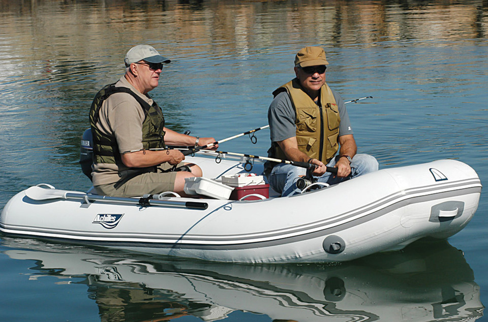 • Inflate the tubes using a quality hand pump or electric pump — follow Achilles pressure guidelines for your Achilles HB-FX Series fiberglass hull for sale